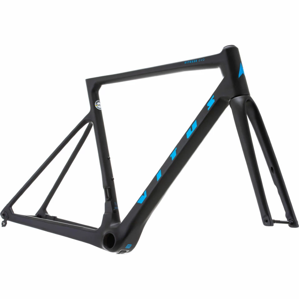 ◌ Rapide, agile et fiable pour les courses sur route modernes, ce cadre Vitus Vitesse EVO est conçu à partir de fibre de carbone unidirectionnelle (UD) ultra-résistante et légère et comprend le cadre, la fourche, le jeu de direction, le collier de selle intégré et les axes.