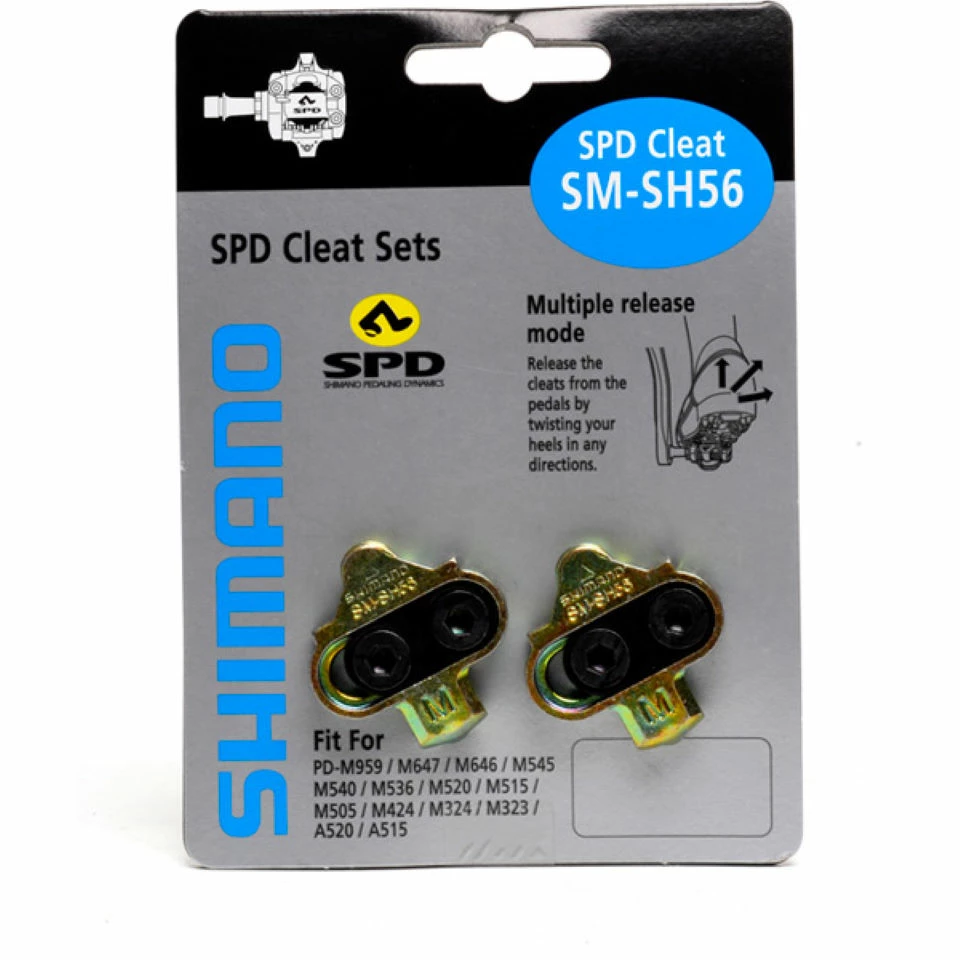 Cales Shimano SPD pour VTT : disponibles en SH51, SH52 et SH56 et adaptables sur la plupart des pédales SPD.