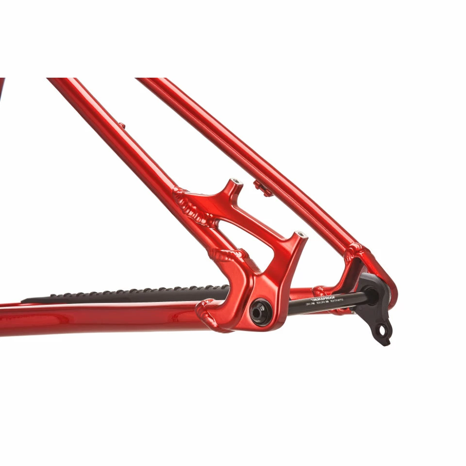 The Nukeproof Scout 275 Alloy Mountain Bike Frame is an ideal hardtail MTB frame for singletrack trail riding and all-mountain adventures. It's compatible with 27.5" wheels, 140mm-travel forks and it has internal cable routing for dropper seatpos